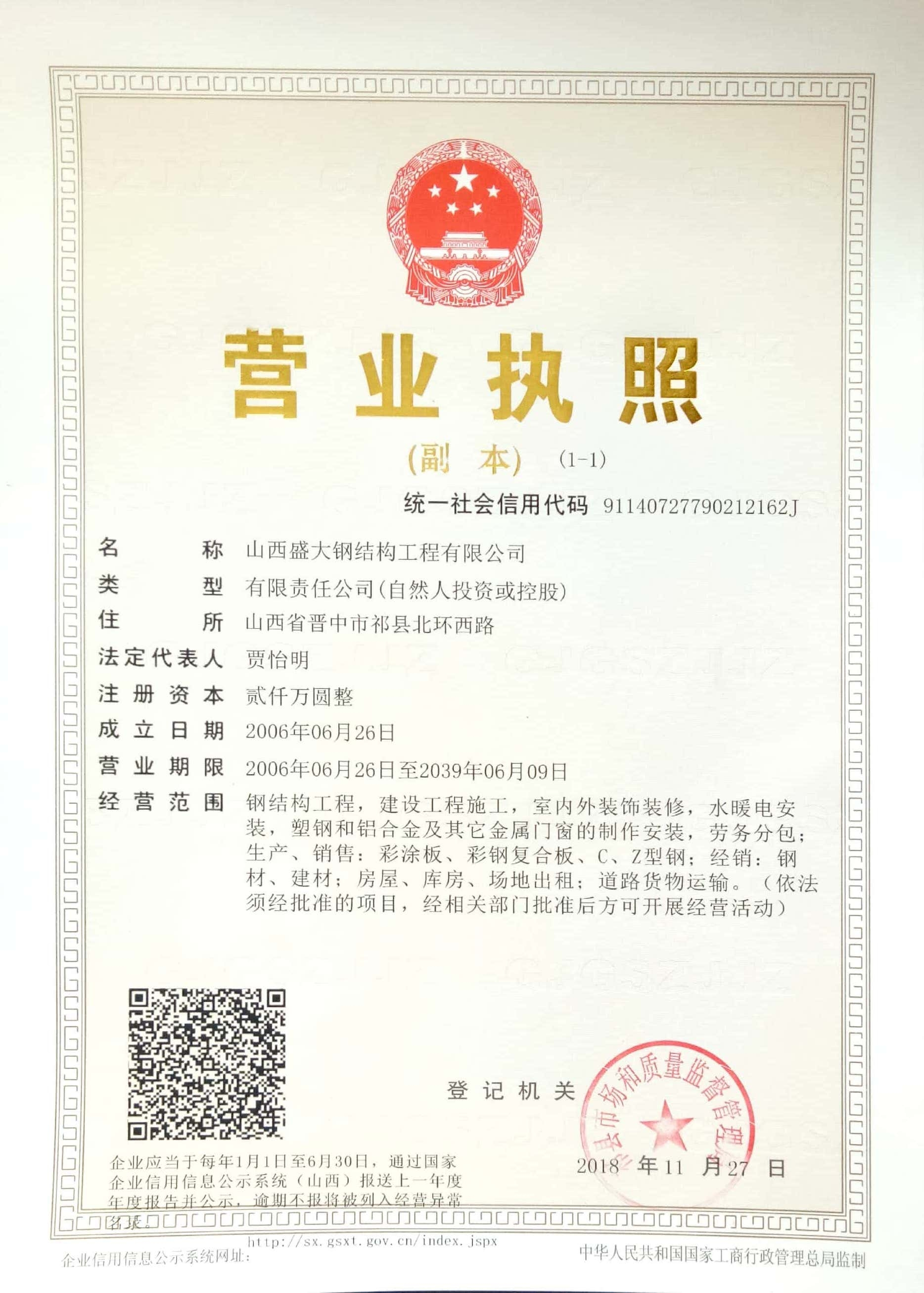 山西盛大鋼結(jié)構(gòu)工程有限公司 山西盛大鋼結(jié)構(gòu)工程有限公司成立于1996年,坐落于國家歷史文化名城——山西祁縣。擁有兩大智能化鋼結(jié)構(gòu)生產(chǎn)基地,占地110畝,建筑面積3萬余平方米,具備鋼結(jié)構(gòu)專業(yè)承包貳級、建筑工程施工總承包貳級資質(zhì),是一家集設(shè)計(jì)、制造、施工于一體的大型鋼結(jié)構(gòu)工程企業(yè)。 盛大鋼構(gòu)是中國鋼結(jié)構(gòu)協(xié)會(huì)會(huì)員單位,山西鋼結(jié)構(gòu)協(xié)會(huì)副會(huì)長單位,山西建筑企業(yè)商會(huì)理事單位,山西省土木建筑學(xué)會(huì)會(huì)員單位,擁有國家知識(shí)產(chǎn)權(quán)局注冊商標(biāo)。公司已通過ISO9001質(zhì)量管理體系認(rèn)證,體系覆蓋鋼結(jié)構(gòu)加工與施工等核心… more +